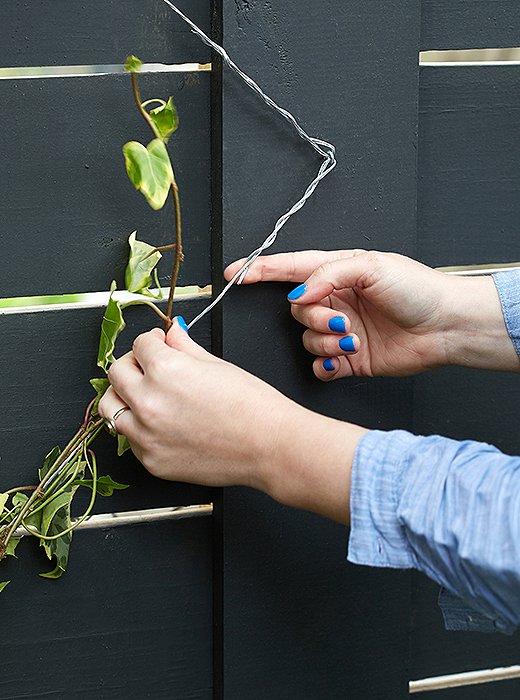 Once the model has been drawn and you put the hooks and the wire, it is time for the plant itself. Plant it near the wall and into a position where it can easily reach its lowest point. Carefully twist the plant around the wire. Regardless of the choice of plant, you will need to encourage new growth to reach anywhere through the model.
